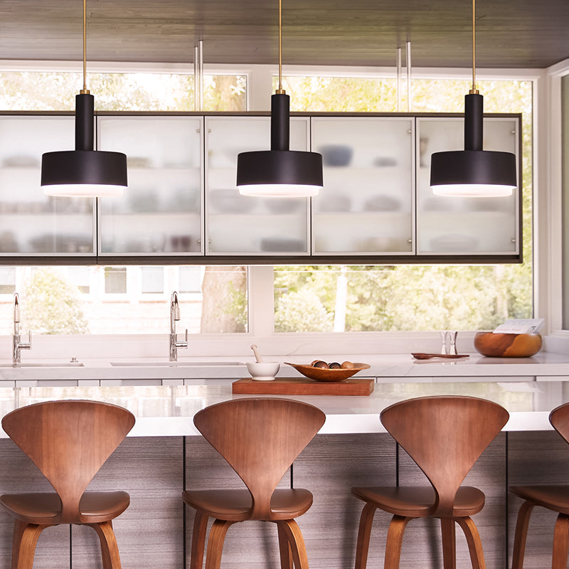 Inspired by industrial lighting, the hard-working, large-scale Pratt Street prismatic pendants by Sea Gull Lighting put light where you need it, while making a significant design statement.