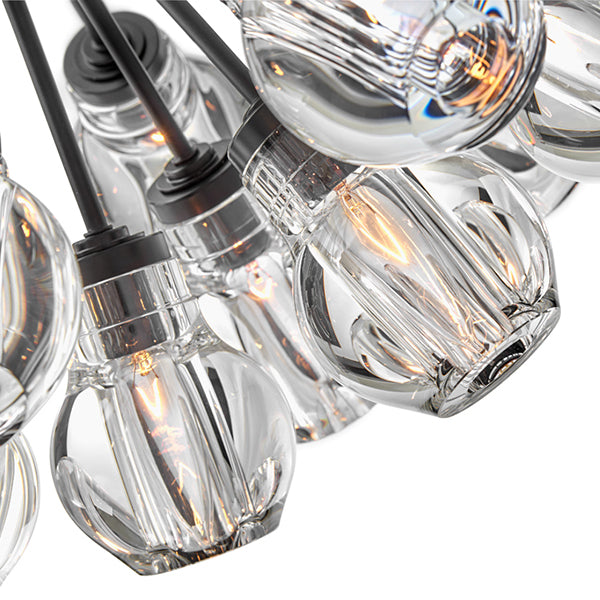 Elise infuses spaces with mesmerizing elegance. Light dramatically refracts from jaw-dropping, rounded, thick-cut crystal shades arranged in an enticing cluster formation. The robust arms, offered in either rich Black or Heritage Brass finishes, extend outward in a beautiful radiating pattern.