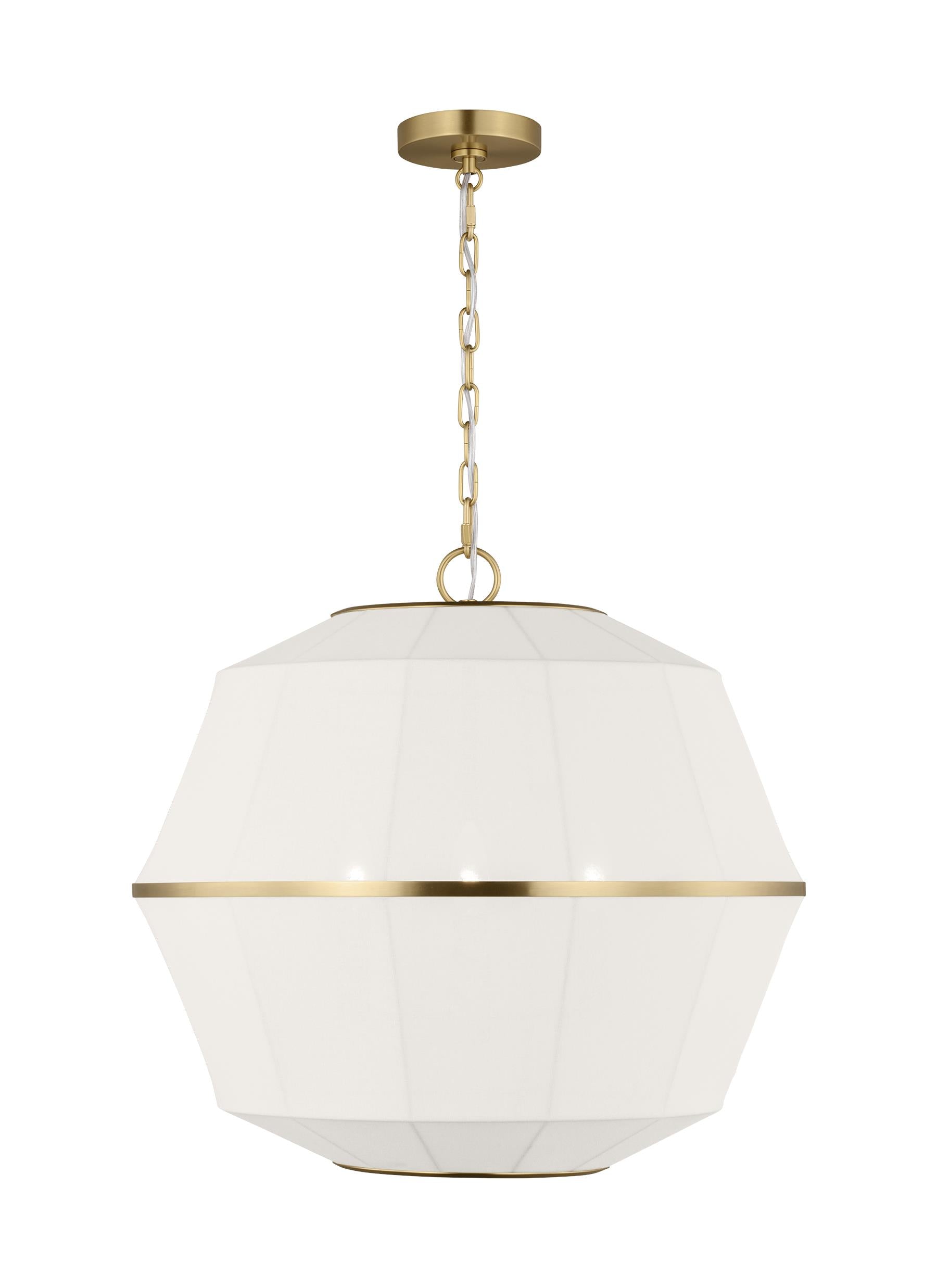 Hikari is the Japanese work that translates to "light," an entertaining illumination. The Hikari collection is an Asian-modern fused design. Clean lines and crafted linen shades make Hikari unique. The minimal band at the center of the pendant - your choice of Burnished Brass or Aged Iron finishes - connect the shades making for a unified look as the light diffuses harmoniously.