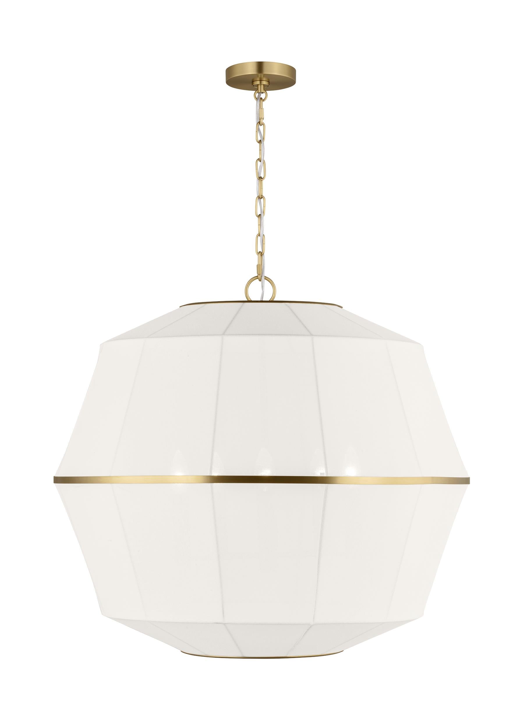 Hikari is the Japanese work that translates to "light," an entertaining illumination. The Hikari collection is an Asian-modern fused design. Clean lines and crafted linen shades make Hikari unique. The minimal band at the center of the pendant - your choice of Burnished Brass or Aged Iron finishes - connect the shades making for a unified look as the light diffuses harmoniously.