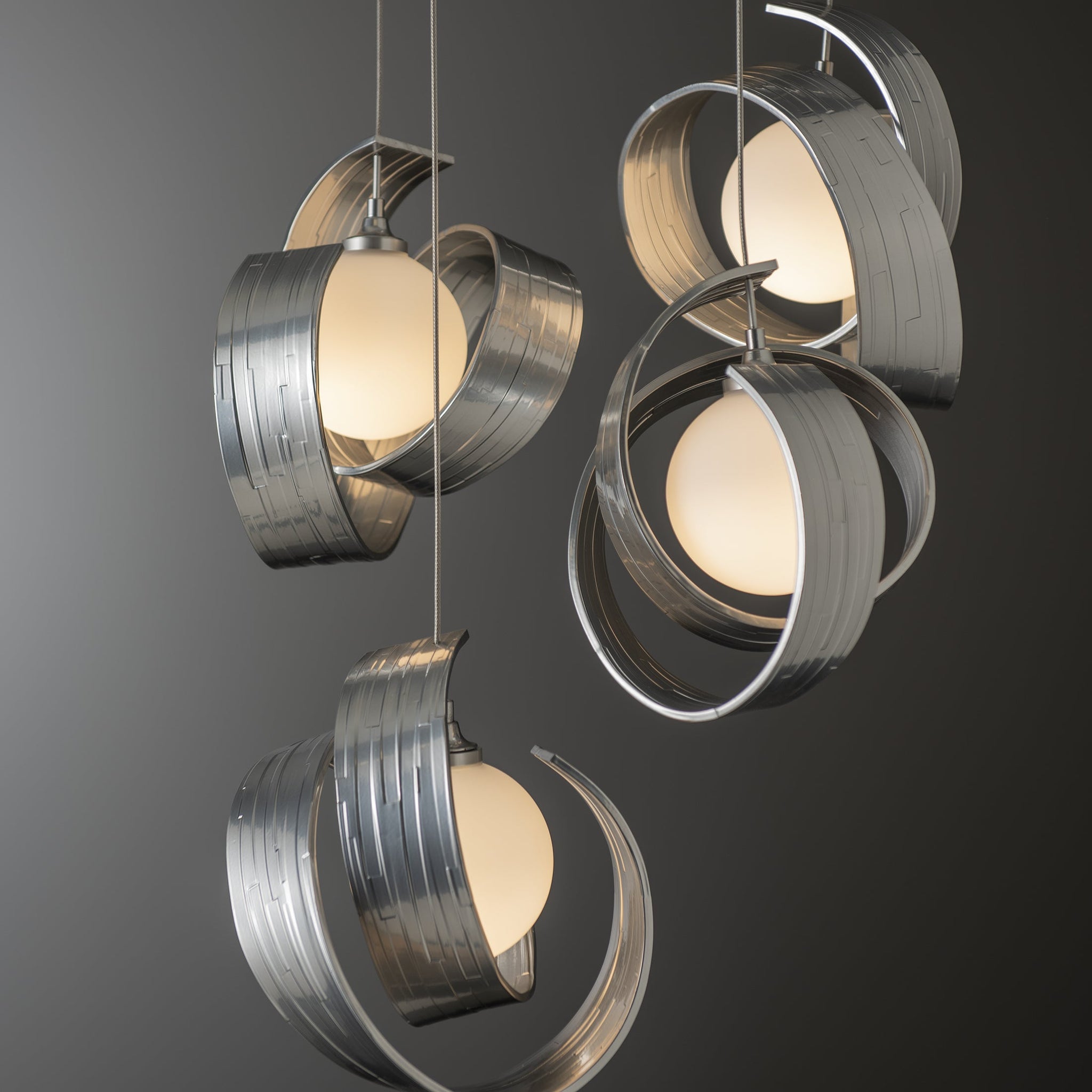 Pendant or semi-flush? The versatile Riza 5-Light can be either! Customizable cable lengths can be shortened to create a dramatic semi-flush; while longer lengths allow you to create a cascade of staggered light, gather them together at one length, or any design that suits the space. The Riza design is striking with its sculptural, modern style. The hammered texture of the shaped aluminum “curls” are handmade by our artisans in Vermont.