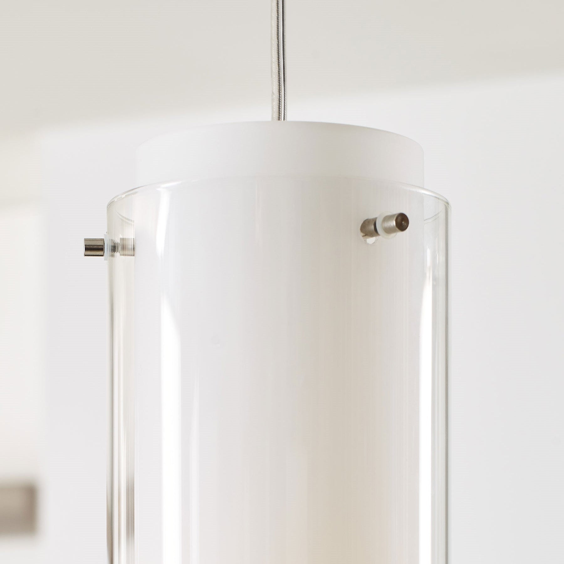 The Echo pendant light by VC Modern is a timeless contemporary glass cylinder pendant. The modern silhouette of this pendant surrounds an inner white glass cylinder to echo with a pop of color while softly diffusing the light within. With on trend color options and high quality finishes the Echo pendant creates an clean yet sophisticated look and feel to any space. This pendant is ideal for home office lighting, bath lighting or even bedroom lighting over bedside tables.