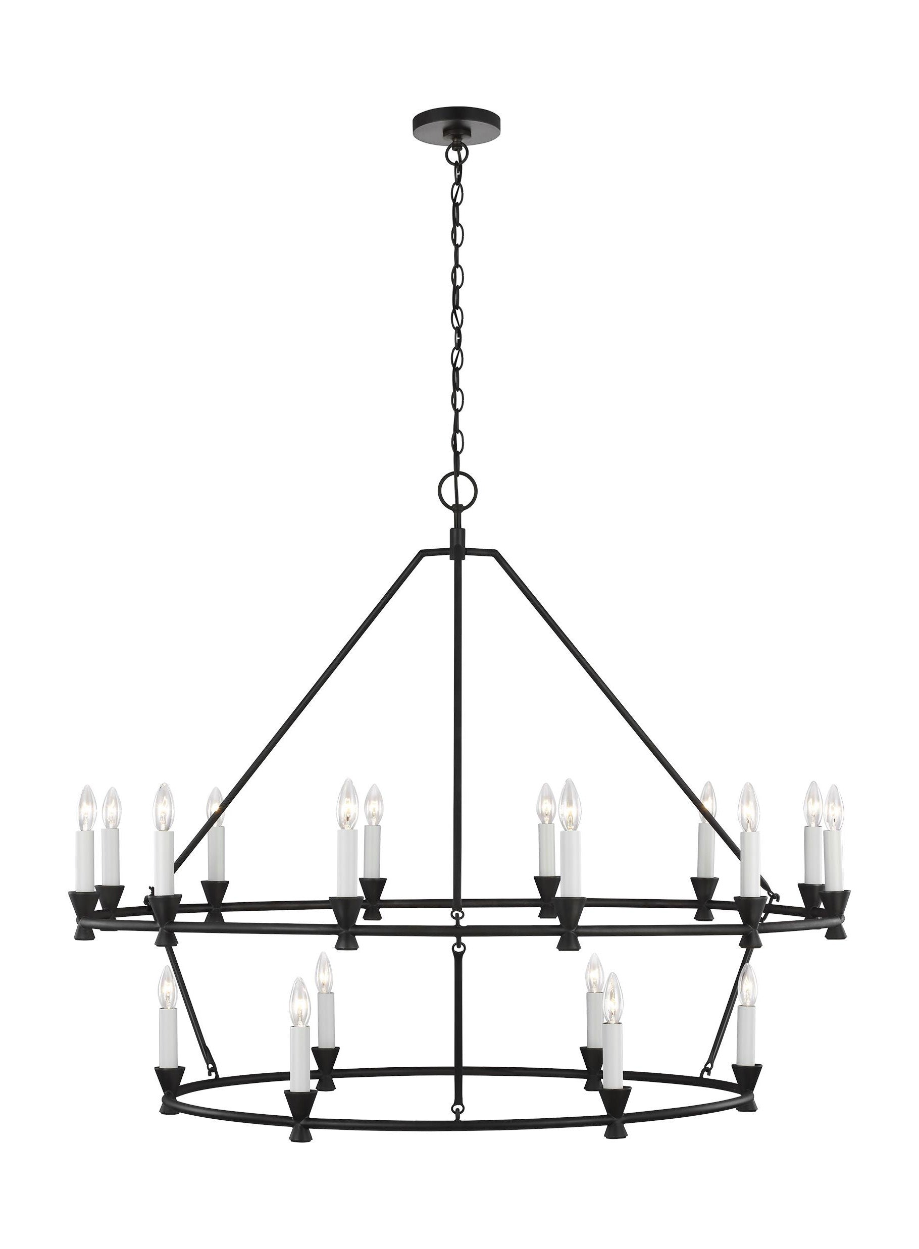 A mid-century rustic series Inspired by elements in the works of sculptors Diego and Alberto Giacometti. An exposed candelabra pairs with an angular, Aged Iron frame to ensure the Keystone family casts a warm and inviting glow. This collection by Chapman & Myers works in many big spaces and looks from modern to modern farmhouse.