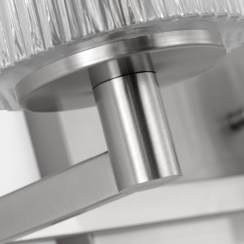 Fluted glass is recognized by long vertical groves, lending texture to the fixture and glamour to your room, while obscuring the lamp. Available in Brushed Steel, Midnight Black, Satin Brass and Chrome finishes. Perfect in the bathroom.
