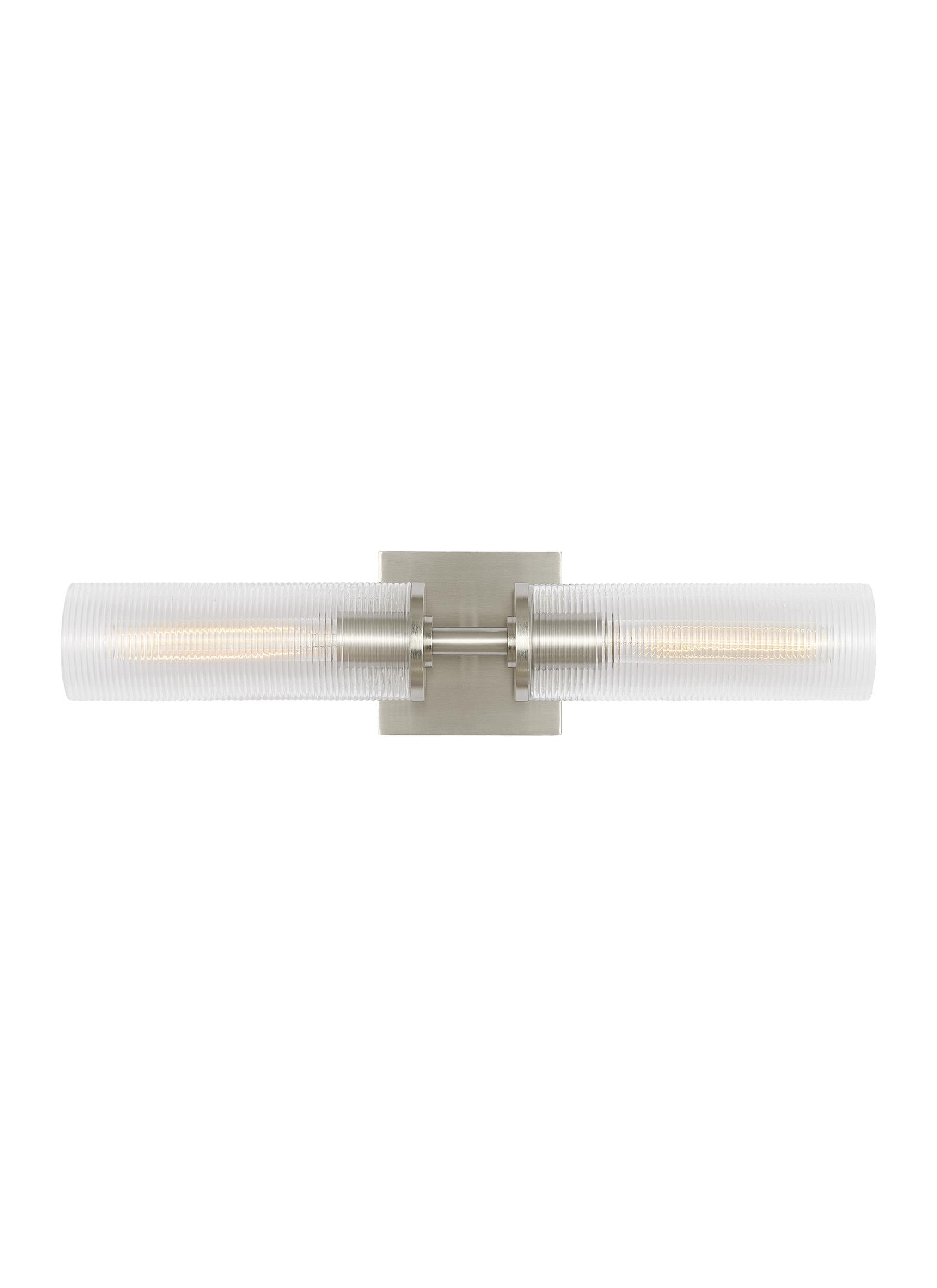 The horizontal ribbed clear glass gives an elegant vibe to the Sarita collection by Drew & Jonathan Scott. Perfect for many decors, in the bathroom, hallway, lounge or kitchen. The Sarita collection is available in Satin Brass, Chrome, Brushed Nickel or Mid-Night Black finish.