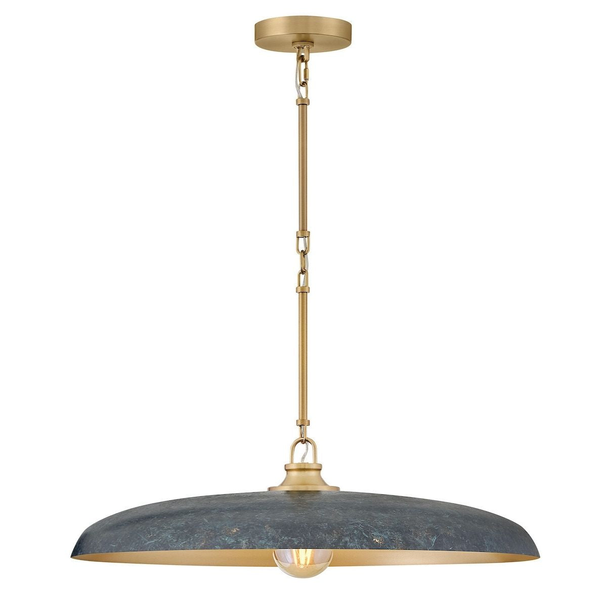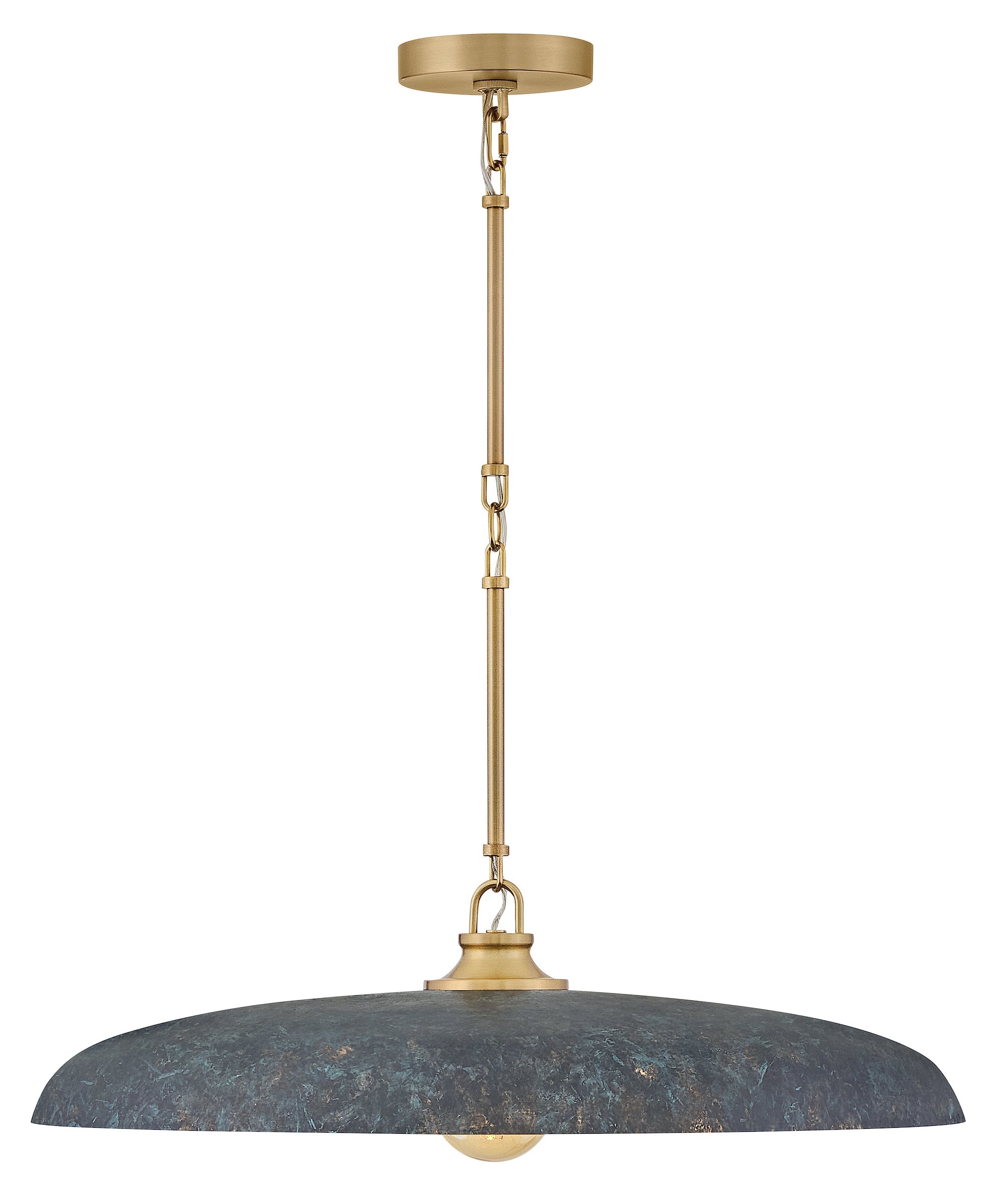 A sophisticated, transitional accent piece, Sadie features a large yet shallow, saucer-style shade with contrasting interiors. Classic two-tone finishes and decorative chain-linked stems enhance bright yet inviting illumination. The special Vintage Denim finish, Antique Verdigris finish along with Heritage Bronze finish, are new luxury finishes in 2026 for the Sadie collection.