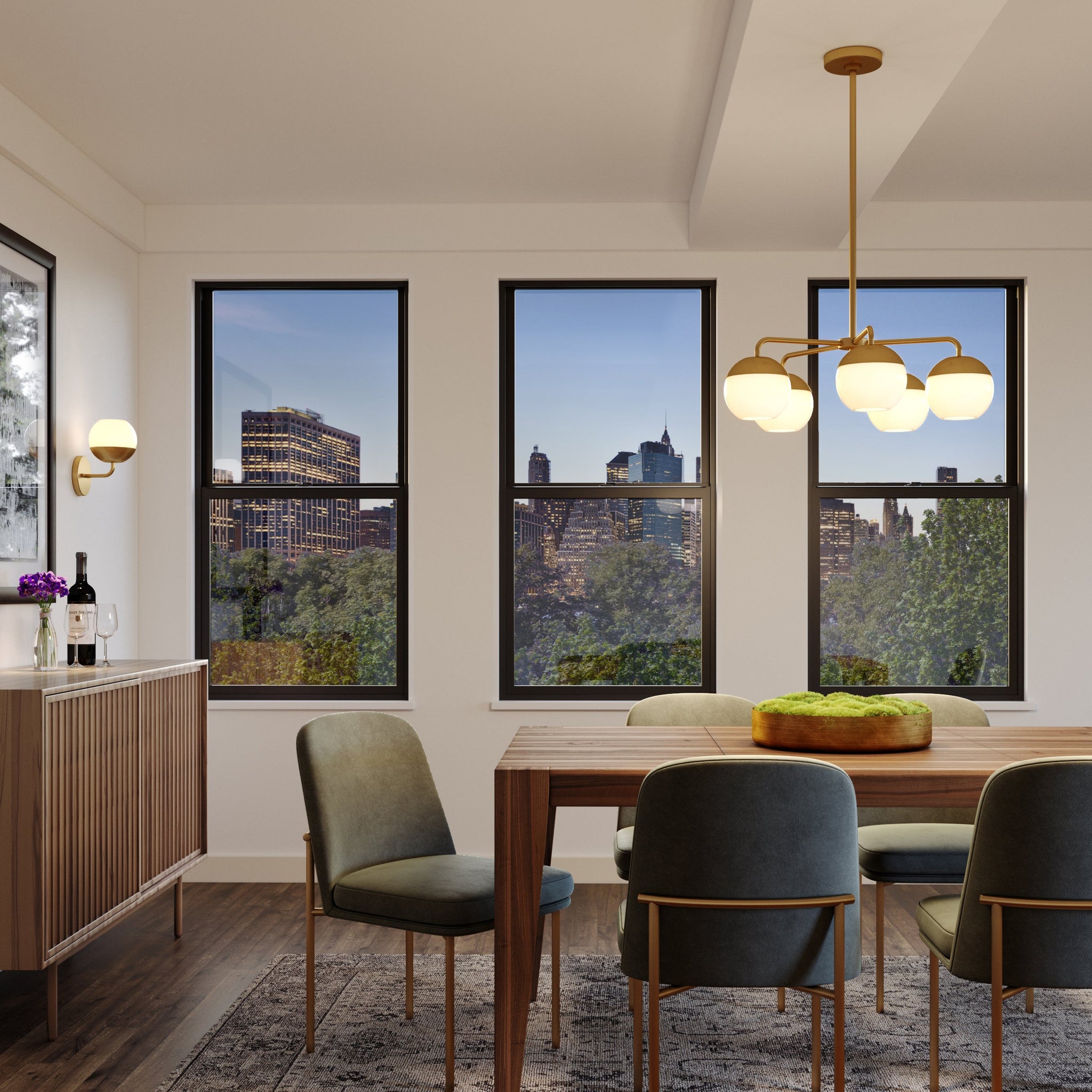 Alvin embodies a classic Midcentury design. The arms of the chandelier are on a pivot to direct light in any specific direction. The brushed nickel silver, Midnight Black or Satin Brass, and opaque white combine creating an elegant color palette that will work well in almost any décor.