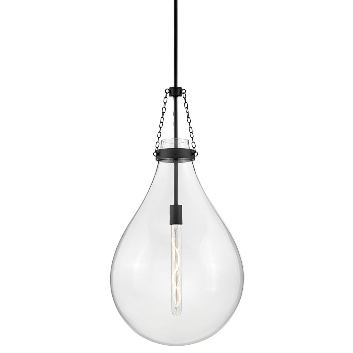 Eloise is bold and balanced with a compelling silhouette that is the definition of "statement-making." The sizable raindrop-shaped glass is further enhanced by the delicate chain detailing to finish off a truly eye-catching fixture. Finding harmony in intricate simplicity, Eloise adds to any transitional, modern, or traditional space.