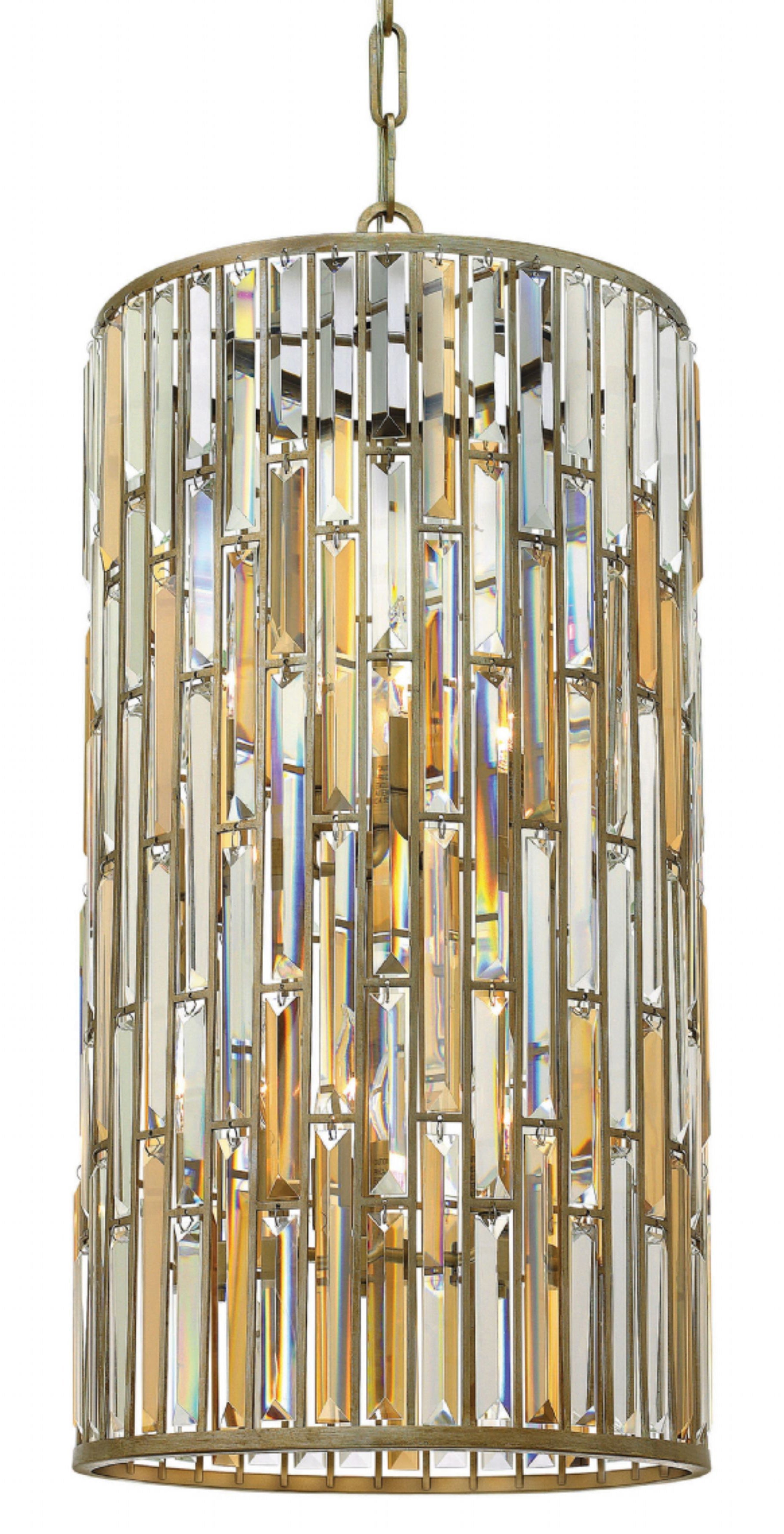 Gemma is a contemporary chandelier collection with stunning rectangular prisms of amber pearl and clear crystal set within a frame of Vintage Bronze or Silver Leaf to create a seamless sparkling, jewelry-like effect.