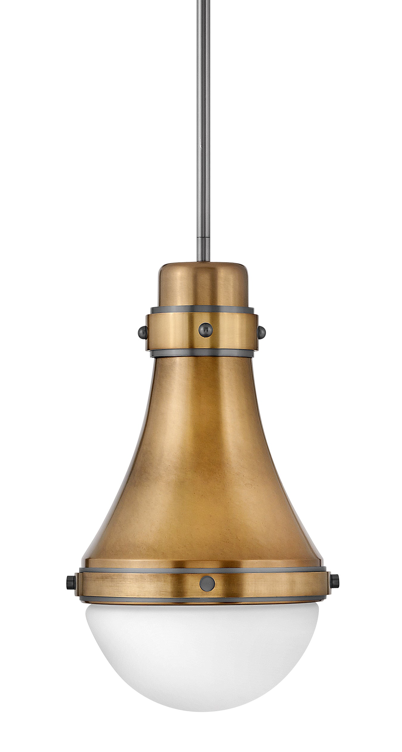 Oliver features an eye-catching sleek spun metal shade and etched opal glass shade beneath. Sleek metal bands and knobs add interest and reinforce its modern-meets-traditional style. Oliver is available in a robust lineup of finish combinations and two sizes, plus flush mount ceiling fixtures in two designs.