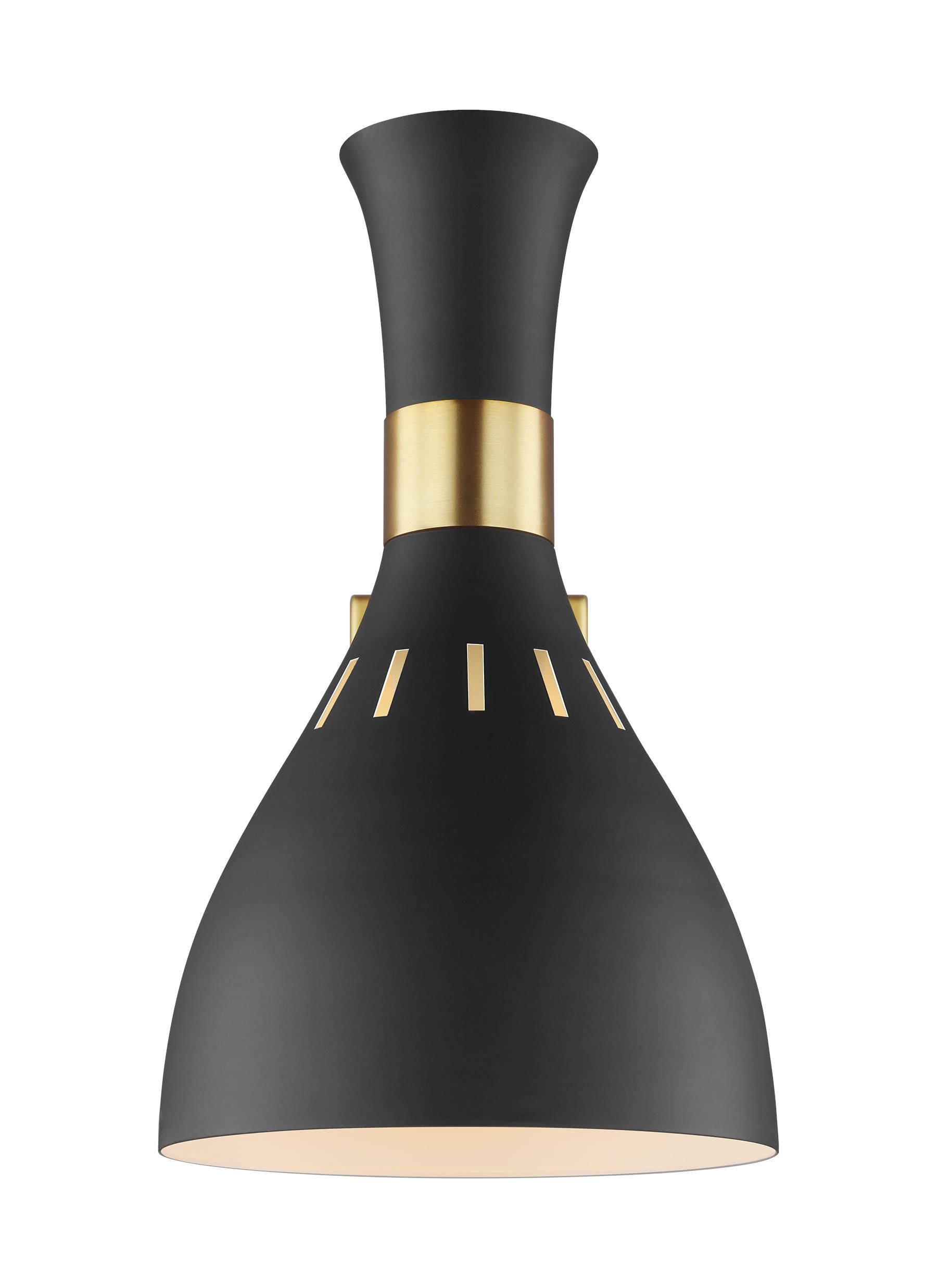 Pairing a rich, two-tone finish with bold, geometric lines gives the Joan family luxe appeal. Its hourglass-inspired shade features small perforations towards its crown, allowing a soft glow to shine through, further articulating the distinctive details of this chic series by Ellen DeGeneres for Visual Comfort Studio.