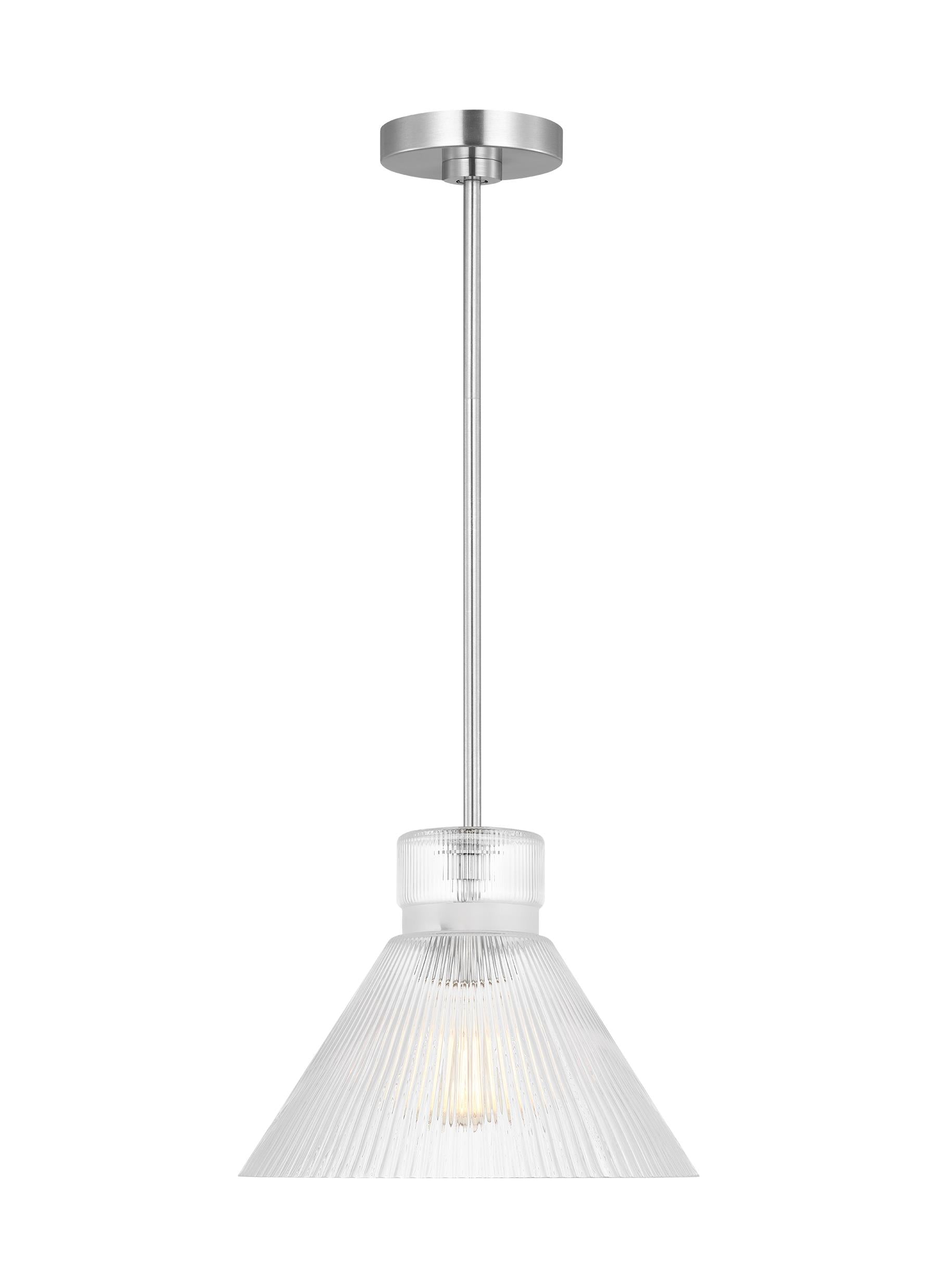 Brushed Steel Finish Clear Ribbed Glass Shade